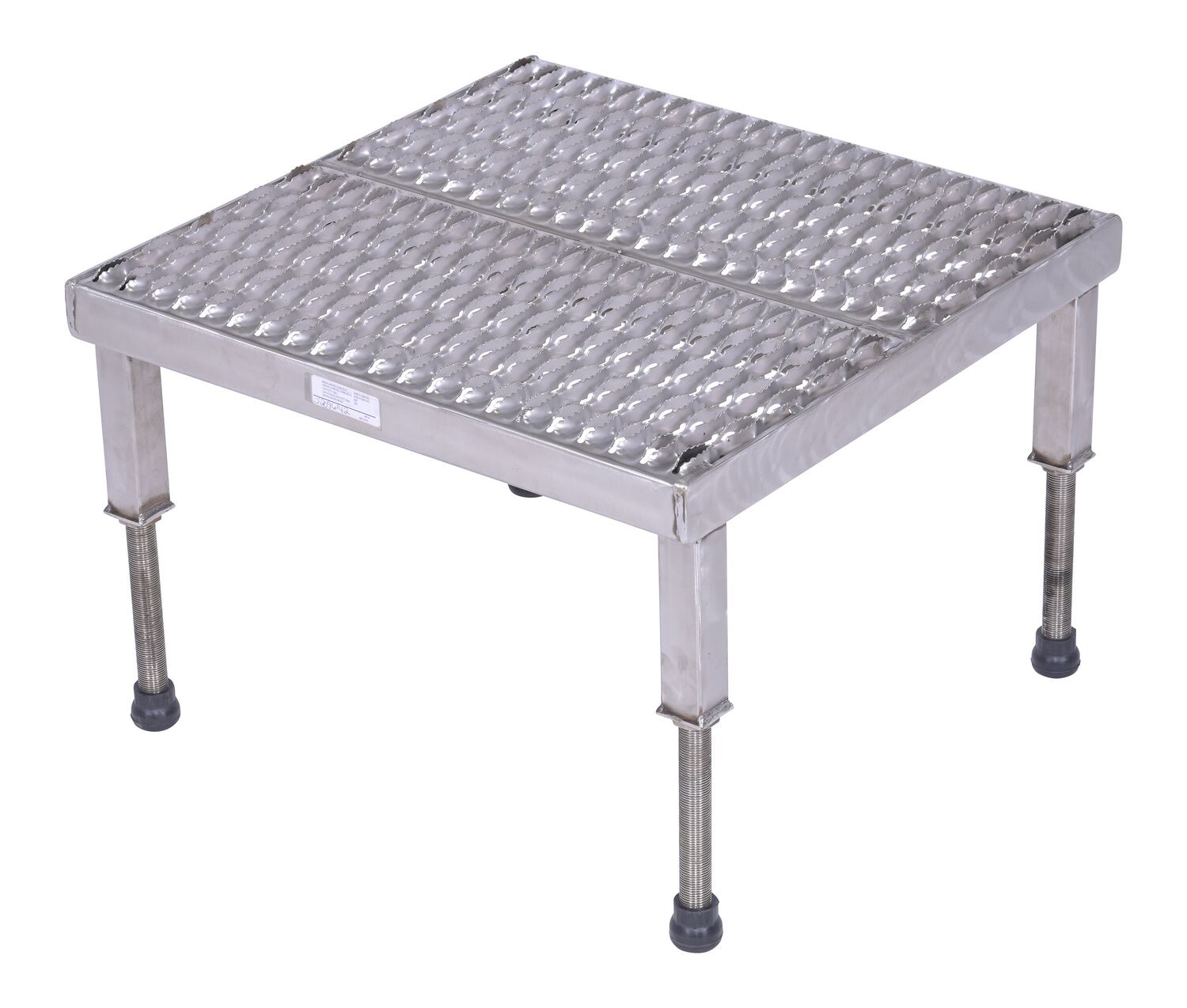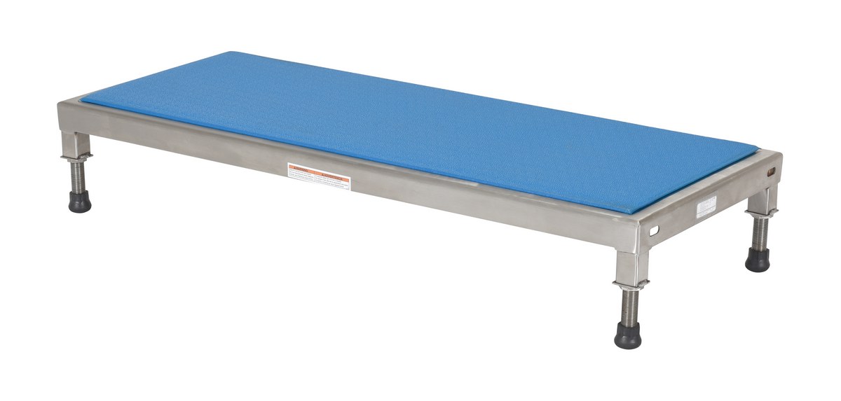Work areas can be ergonomically unfriendly places, filled with prolonged slouching and excessive bending. Those conditions can be even further exaggerated when different shift employees work on the same equipment. But, with an adjustable work-mate stand it's easy to elevate workers to new heights! The corrosion resistant stainless steel construction is perfect for a variety of enterprises. Just a few examples are; pharmaceuticals, chemical plants, and marine environments. Whether you are looking for a single person design or a model that can accommodate multiple users, we've got it! All sizes have four (4) legs except the 60", 72", and 96" long models which have six legs.