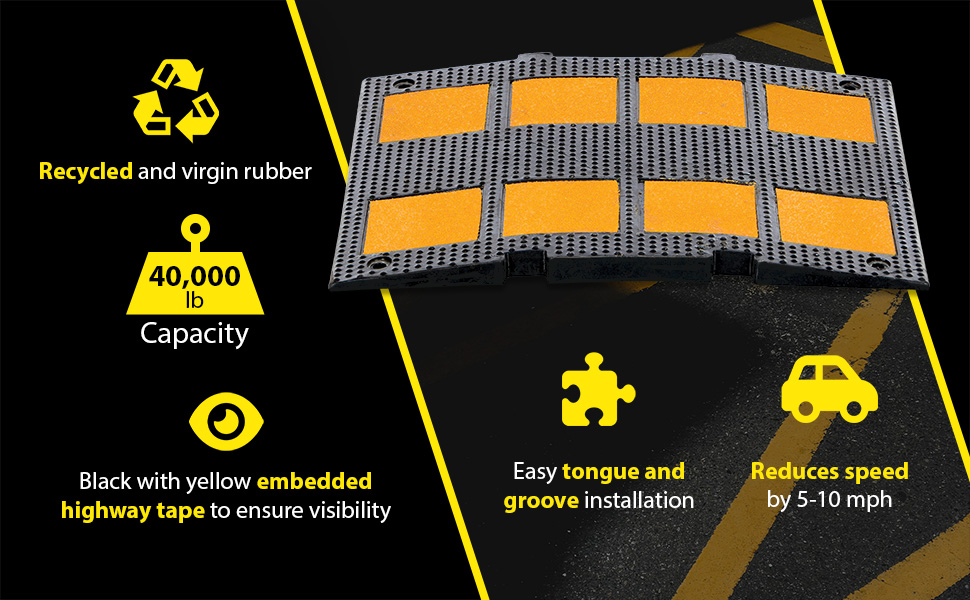 RSH-120-36-C RSH-120-36-CRubber Speed Hump Concrete Hardware 118-11/16 In. x 35-1/4 In. x 1-7/8 In. 60000 Lb. Capacity Black / YellowUniform Capacity (lb.): 60,000