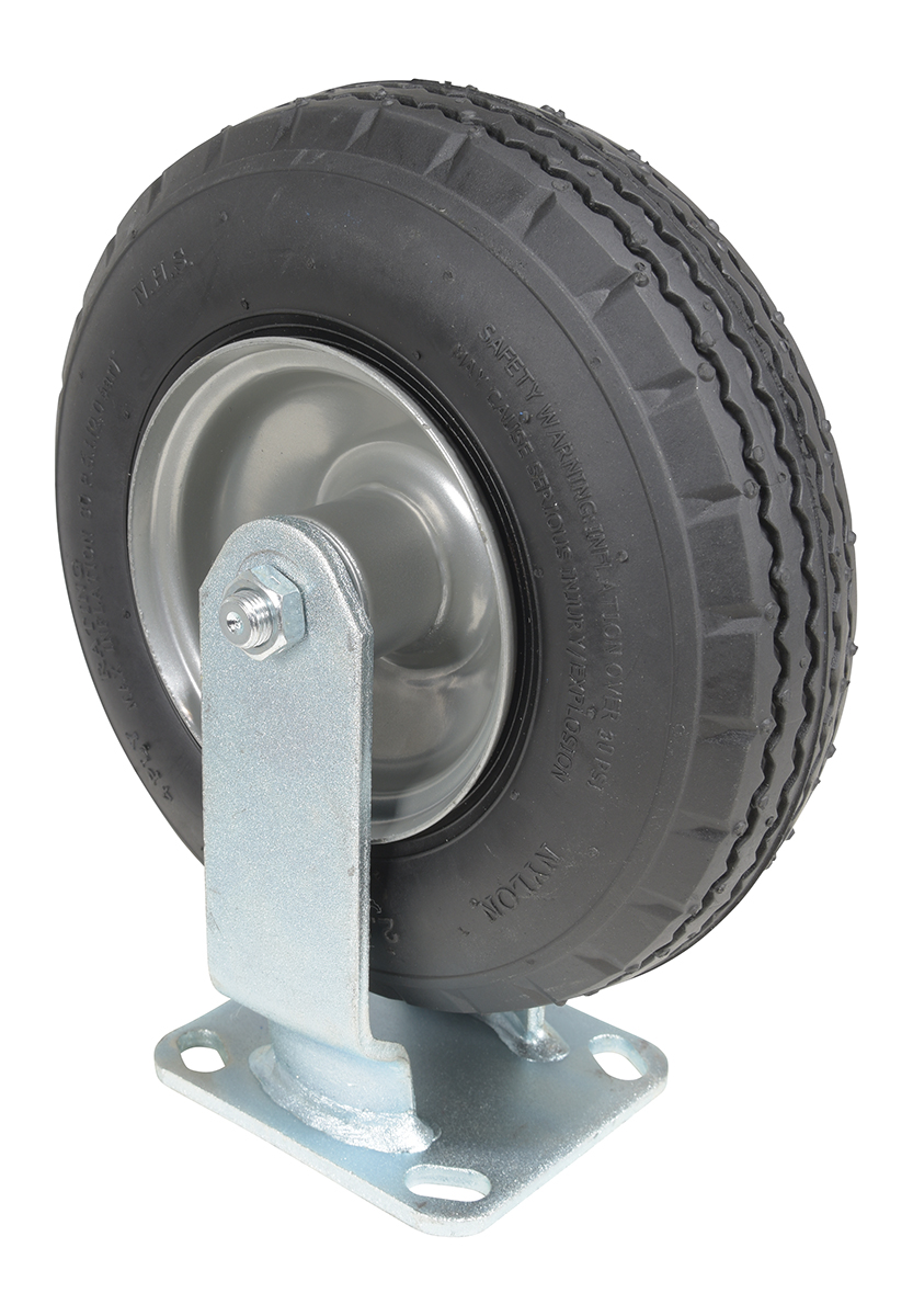 Pneumatic casters provide a shock absorbent ride that cushions and protects fragile loads. They offer a smoother ride over uneven difficult terrain. Likewise, pneumatic casters provide better grip and control over challenging debris.