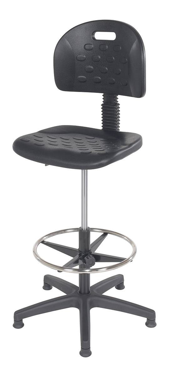 An Ergonomic Work Chair is a wonderful asset for workstations across a variety of commercial environments. With a polyurethane material and steel construction, the stool is comfortable and easy to clean. The height adjustment feature gives the user the ability to lower or raise the chair to the perfect position. Plastic casters are included for quick movement in the work area. Hardware included, assembly required.