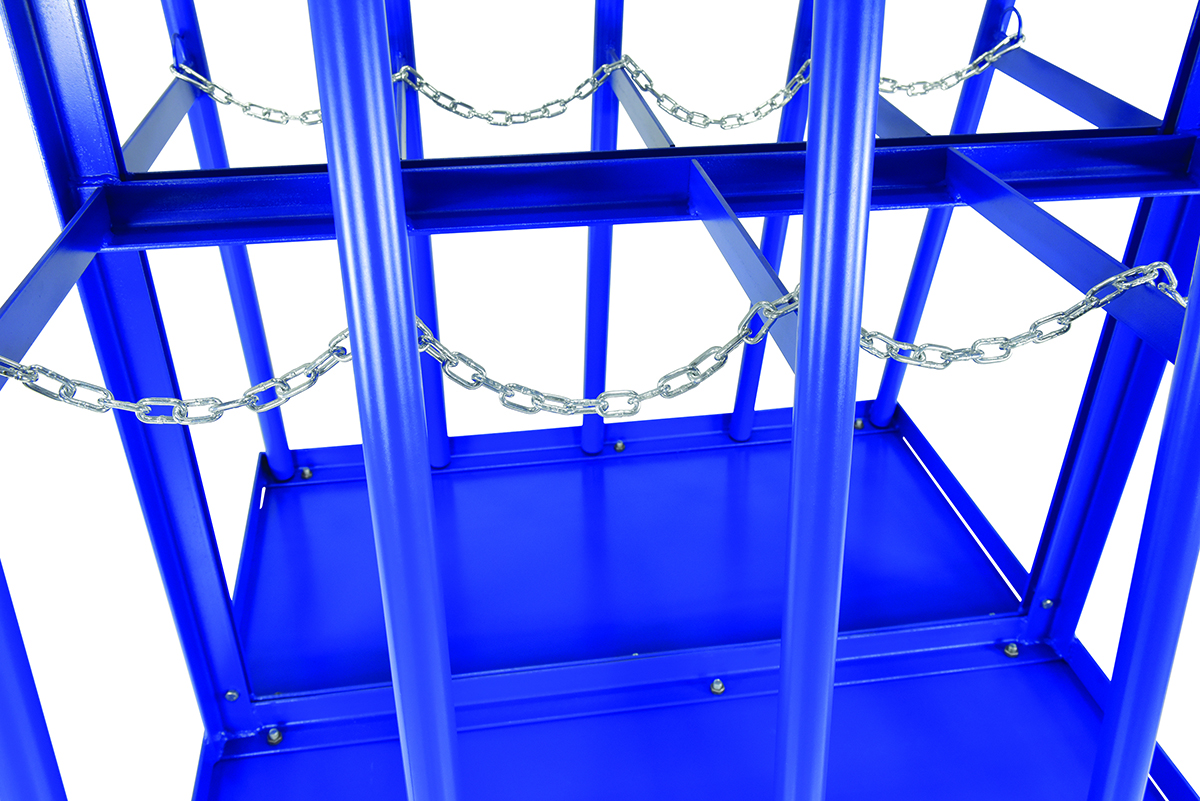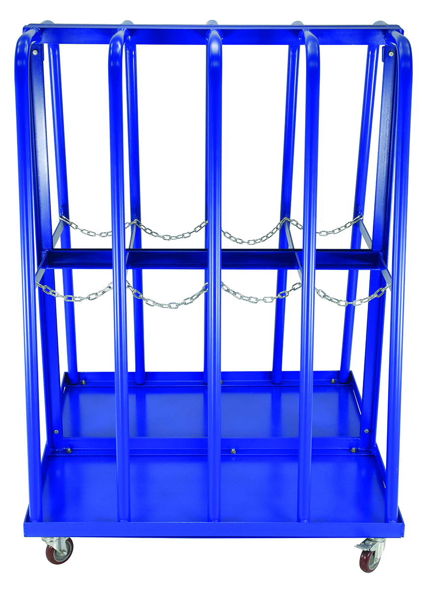 Designed for vertical storage of tubing, pipe, and other types of similar materials. Organize pipes, and extrusions with odd lengths instead of discarding them. Each rack cart has a total of (8) eight bays, (4) four bays on each side. Fully welded steel construction with a baked-in powder coat blue finish for toughness. Maximum material height 10 feet.