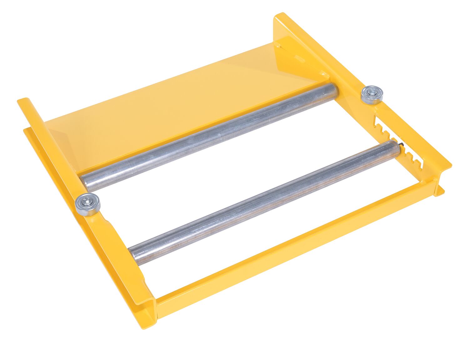 Keep reels in place while dispersing products with the reel dispenser! Size capabilities can be shrunk or lengthened by moving the adjustable roller to a different notch and dropping it into place. When in place the reel touches both the front and back roller, allowing the reel to stay in position while the contents of the reel are dispensed.