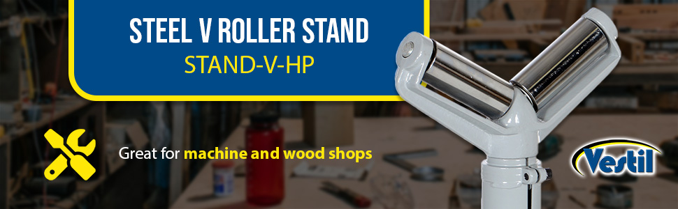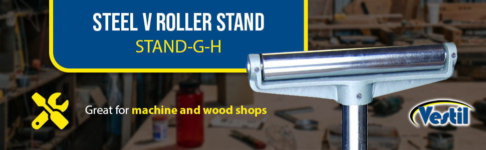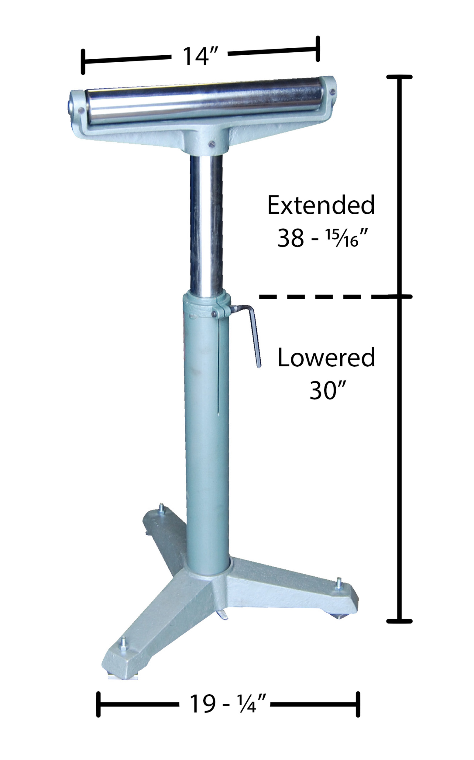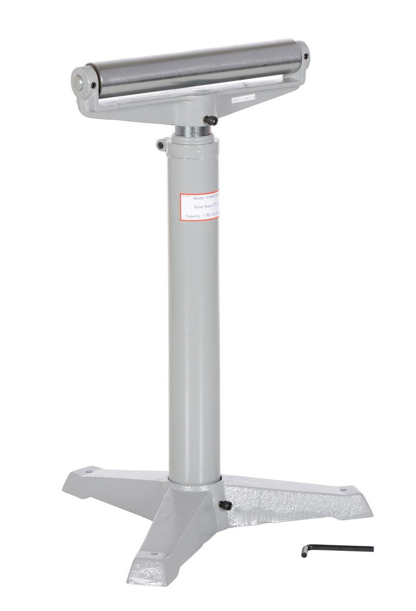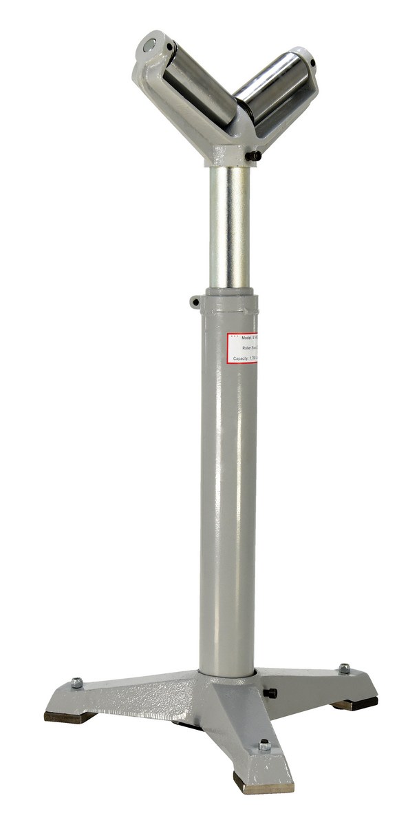 Designed for use as an extra hand when working with long materials. Each stand includes 2" chrome plated rollers and heavy-duty cast-steel base. Choose either v-groove roller design or flat single roller design. The height of each stand is adjusted with a friction lock screw or a gas charged cylinder. Great for use in machine and wood shops. Ships knockdown.