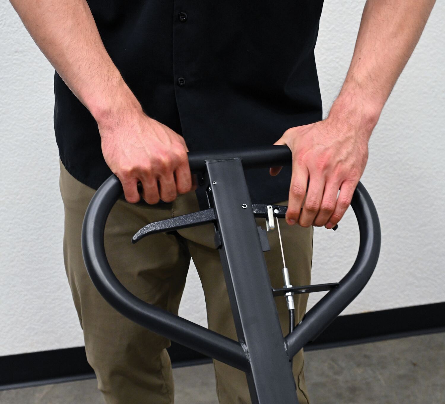 PM5-2748-DMHBPallet Truck with Hand Brake, model PM5-2748-HB, allows you to depress the hand brake to slow down or stop truck. The "Dead Man" Hand Brake Pallet Truck, model PM5-2748-DMHB, only moves when you depress the hand brake. Retrofit kit not available. Individual fork width is 7".