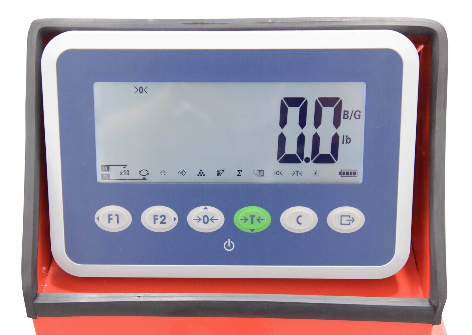 PM-2748-SCL-LP_F.jpgThe Pallet Truck with Digital Scale allows you to weigh your load on the spot for maximum efficiency. The frame uses heavy-duty steel construction for maximum strength and durability. This model is very user friendly and is suitable for low height lifting. The built-in scale allows you to weigh your load as you are handling it. The scale is selectable in a variety of increments to adjust to the size of your load. It has keyboard calibration and functional setup with automatic zero capabilities. Digital filtering is used to help compensate for vibration and motion to make the Pallet Truck with Digital Scale smooth and accurate. Scale accuracy is +/-0.1% of the applied load. Forks are 7" wide each. Factory calibrated for shipping destination. AC adaptor included. Powered by 6 AA batteries. (Four (4) AA batteries included in units PM-2048-SCL-LP-SS and PM-2748-SCL-LP-SS). Models ending with "E" are economy models. Those skus have a scale powered by (1) one 6V battery.