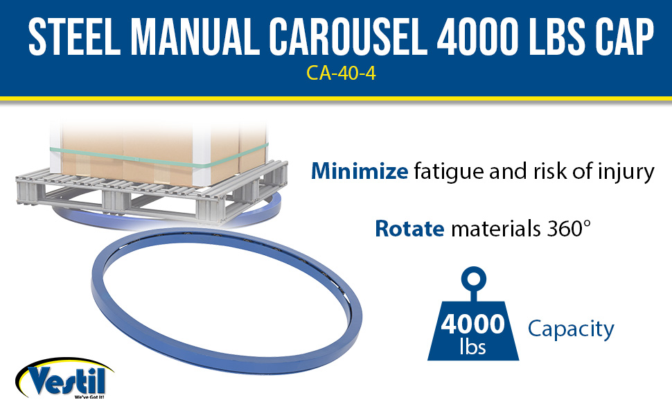 CA-40-4 CA-40-4Steel Manual Carousel 40 In. Diameter 4000 Lb. Capacity BlueUniform Capacity (lb.): 4000
