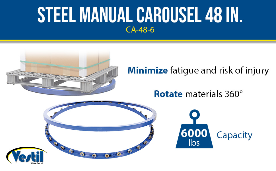 CA-48-6 CA-48-6Steel Manual Carousel 48 In. Diameter 6000 Lb. Capacity BlueUniform Capacity (lb.): 6000