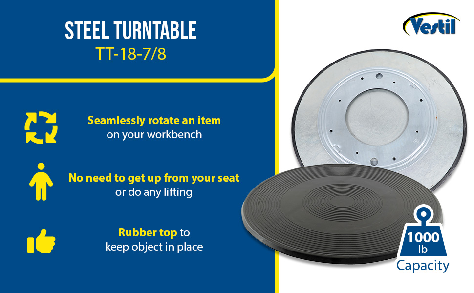 TT-8-4 TT-8-4Steel Turntable 8 In. Diameter 3-7/16 In. Height 500 Lb. CapacityUniform Capacity (lb.): 500