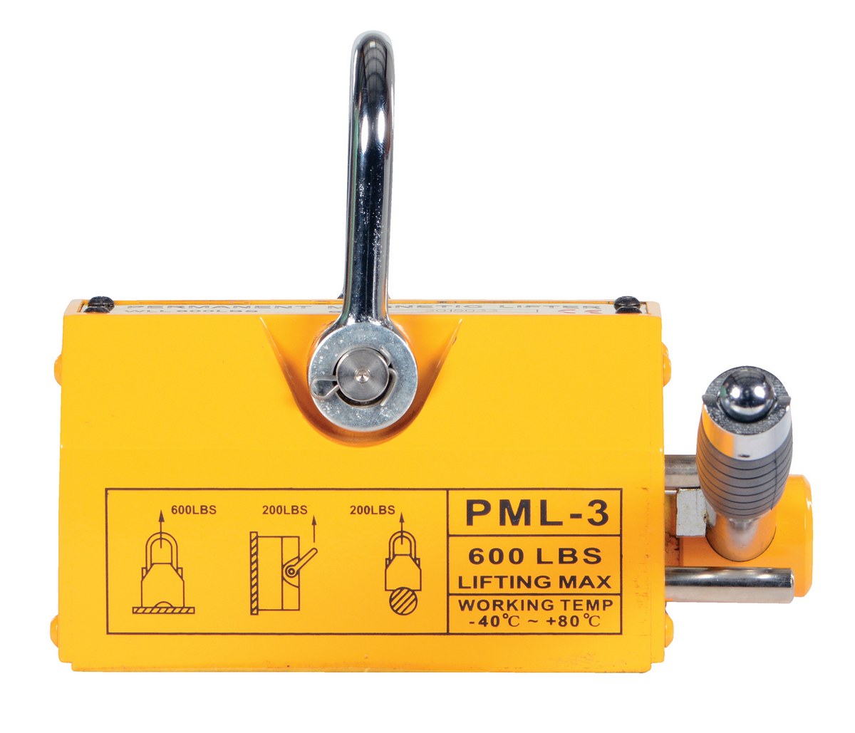 ML-6 ML-6Steel and Neodymium Magnetic Lifter 8 In. x 8-11/16 In. x 6-13/16 In. 600 Lb. Capacity YellowUniform Flat Surface Capacity (lb.): 600
