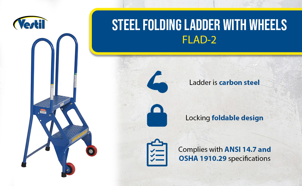 FLAD-2 FLAD-2Steel Folding Ladder with Wheels 2 Step 350 Lb. Capacity BlueUniform Capacity (lb.): 350