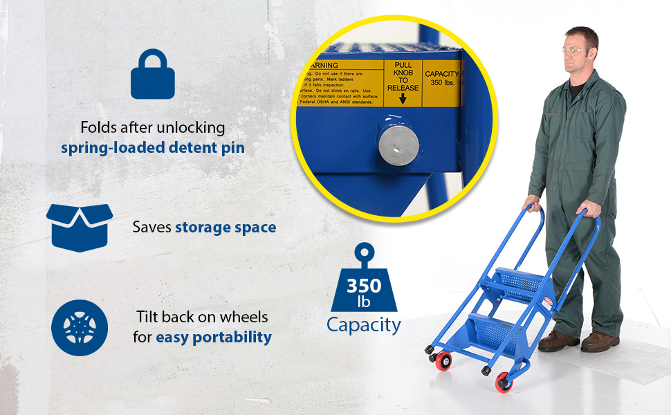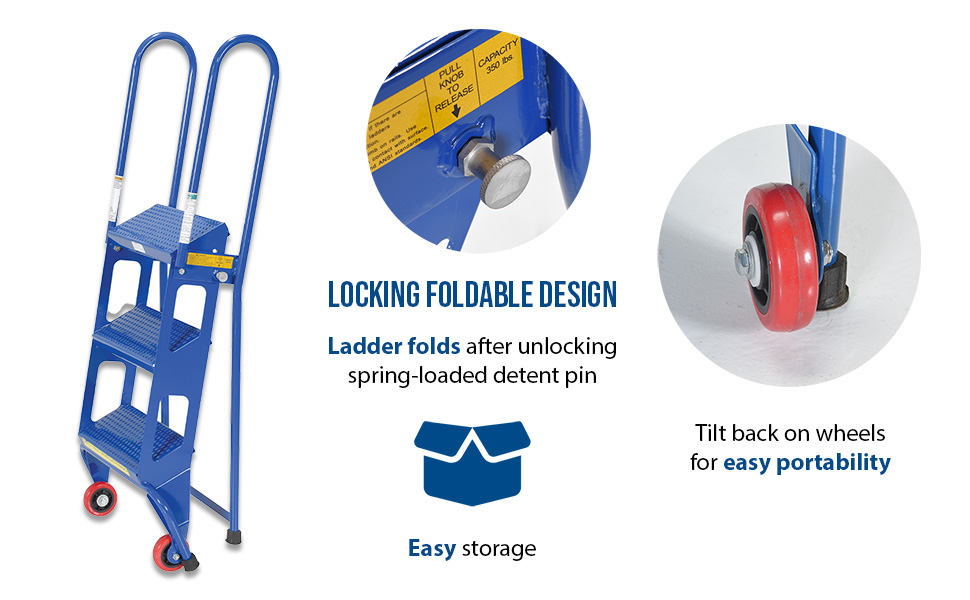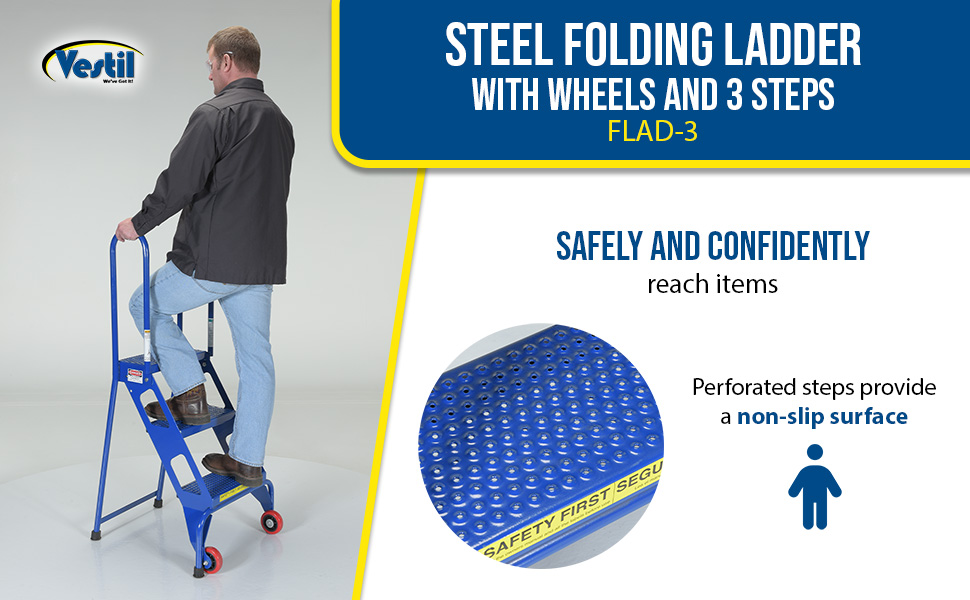 FLAD-3 FLAD-3Steel Folding Ladder with Wheels 3 Step 350 Lb. Capacity BlueUniform Capacity (lb.): 350