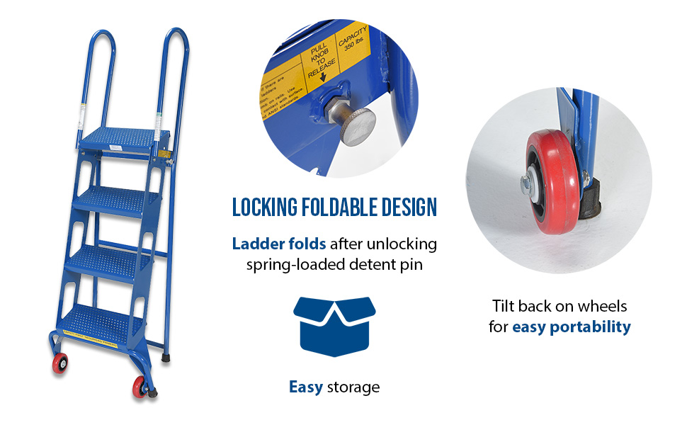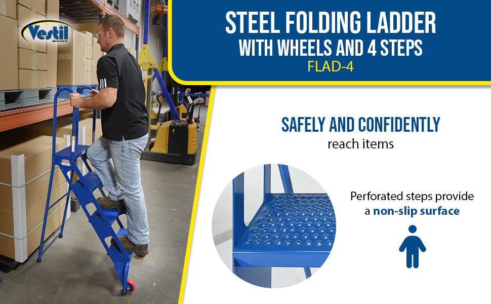 FLAD-4 FLAD-4Steel Folding Ladder with Wheels 4 Step 350 Lb. Capacity BlueUniform Capacity (lb.): 350