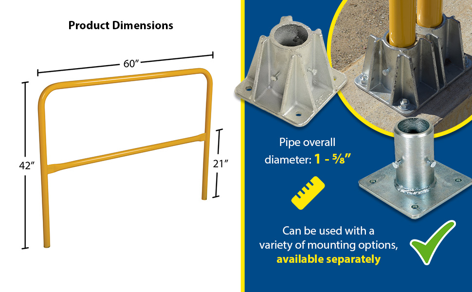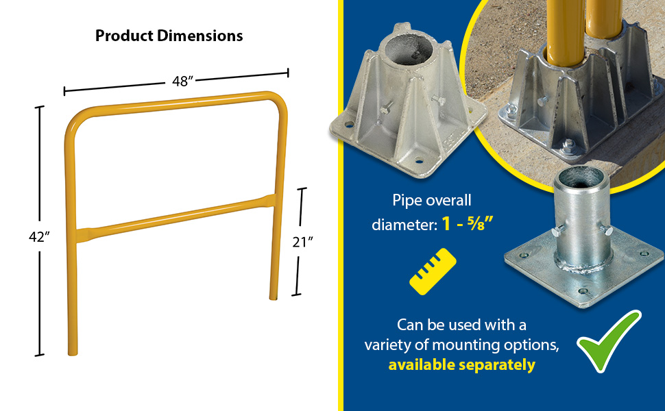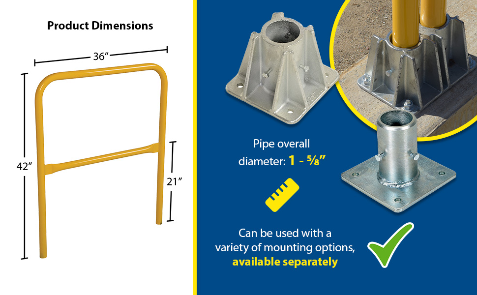 Steel Pipe Railing Barricade Base with Feet Yellow | 90 Days Limited Warranty | 6 |
