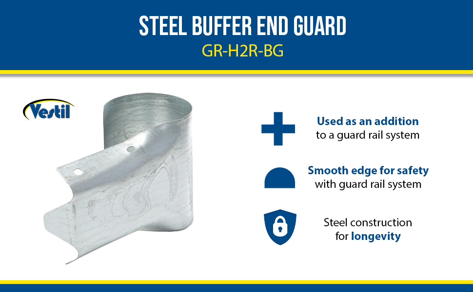 GR-H2R-BG GR-H2R-BG Steel Buffer End Guard For Guard Rail System Silver 90 Days Limited Warranty 24