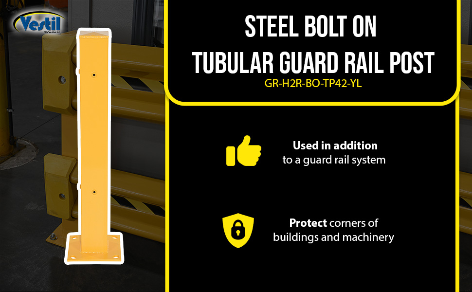 GR-H2R-BO-TP72-YL GR-H2R-BO-TP72-YL Steel Bolt On Tubular Guard Rail Post 72 In. Length Yellow 90 Days Limited Warranty 135