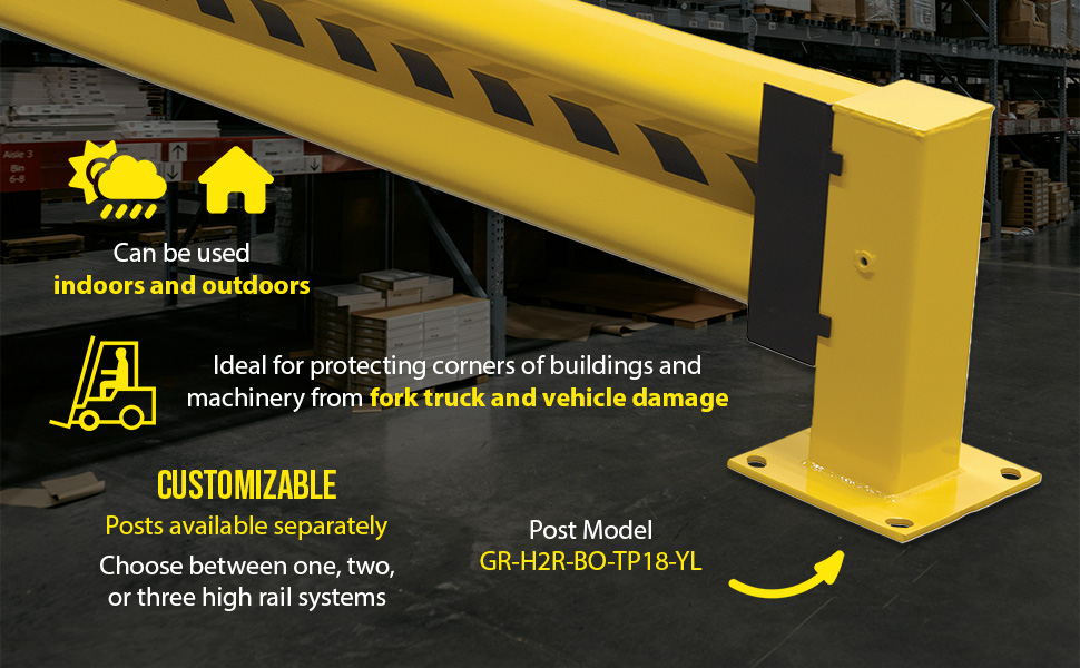 GR-H2R-BO-5-YL GR-H2R-BO-5-YLSteel Straight Guard Rail 60 In. Length YellowMounting Posts Required (qty.): 2
