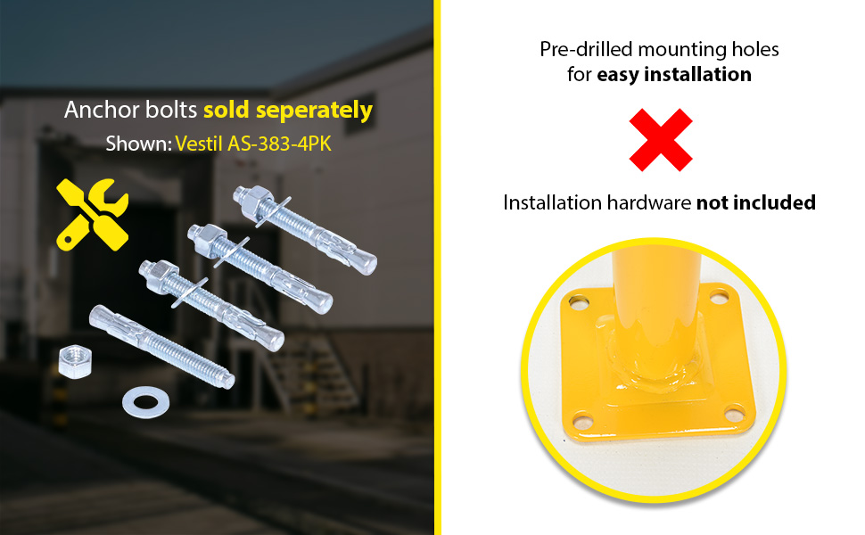 | Steel Pipe Safety Bollard 36 In. x 1-3/4 In. Yellow | Anchor Bolt: AS-383 Anchor Bolt Kit: AS-383-4PK | 9 |