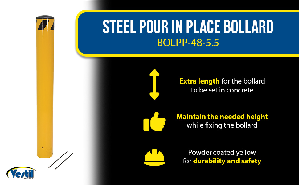 BOLPP-48-5.5 BOLPP-48-5.5Steel Pour In Place Bollard 48 In. x 5-1/2 In. YellowUsable Height (in.): 48-1/2