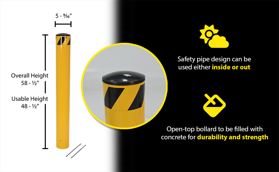 BOLPP-62-5.5 BOLPP-62-5.5Steel Pour In Place Bollard 62 In. x 5-1/2 In. YellowUsable Height (in.): 62