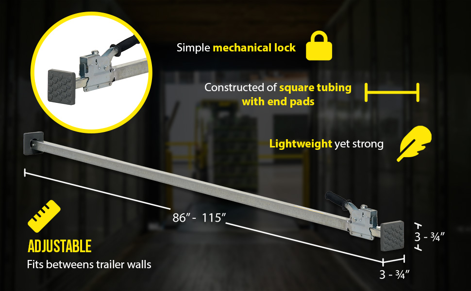 Sometimes trailers can't be packed tight enough to stop items from jostling, which can lead to unnecessary damage and high replacement costs. Here to put an end to those problems even before they start; is a cargo bar with hoops. The hoops provide an upper and lower level of security in addition to the horizontal presence from the cargo bar itself, while the cargo bar is expandable to fit perfectly into the space parameters of the situation. End plate is rubber padded for gripping action. Assembly is required, but hardware is included!