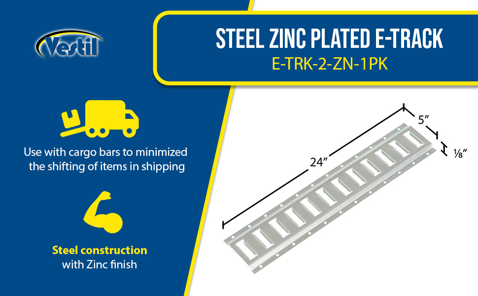 E-TRK-2-ZN-2PK E-TRK-2-ZN-2PK Steel Zinc Plated E-Track 2 Ft. Length 2 Pack Gray 90 Days Limited Warranty 6