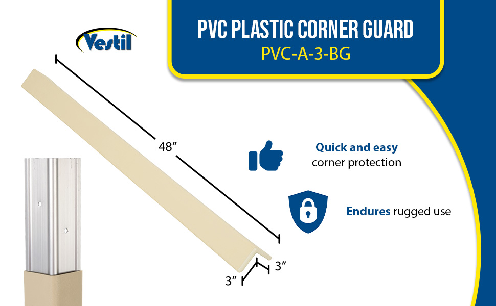 PVC-A-3-BG PVC-A-3-BGPVC Plastic Corner Protector with Aluminum Insert 3 In. x 3 In. x 48 In. 90 Degree BeigePVC Thickness (in.): 1/16