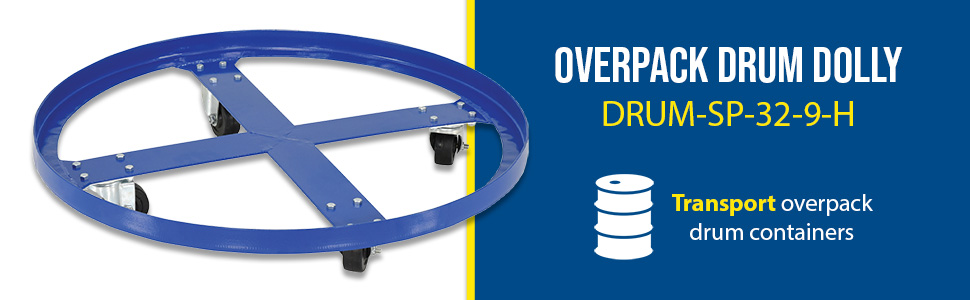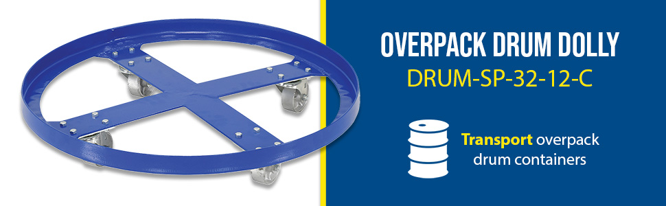 • Over pack drum dolly transports over pack drum container for ideal operation