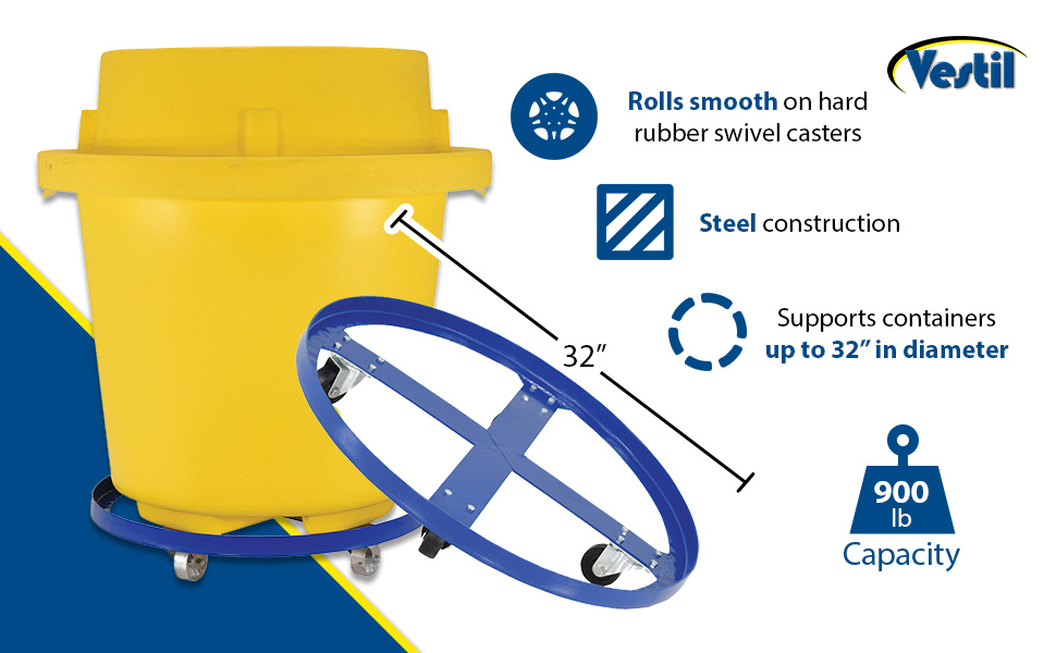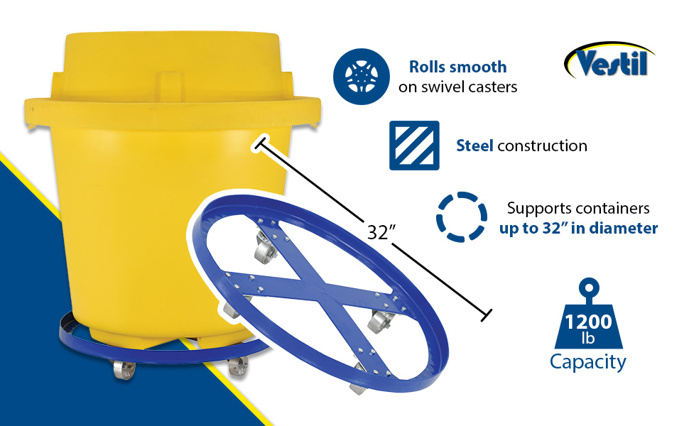 DRUM-SP-32-12-C DRUM-SP-32-12-CSteel Over Pack Drum Dolly 32 In. x 32 In. x 5-5/8 In. 1200 Lb. Capacity BlueUniform Capacity (lb.): 1,200
