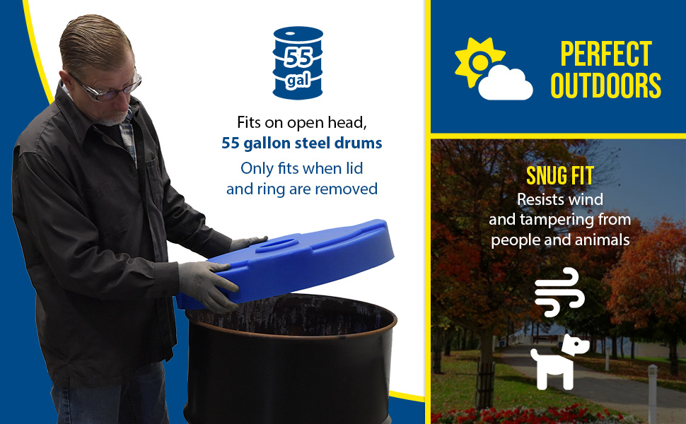 DC-P-55-CANF-BU DC-P-55-CANF-BULow Density Polyethylene Drum Recycling Lid with Flaps Closed 55 Gallon BlueWorks With Steel Drum (gal.): 55