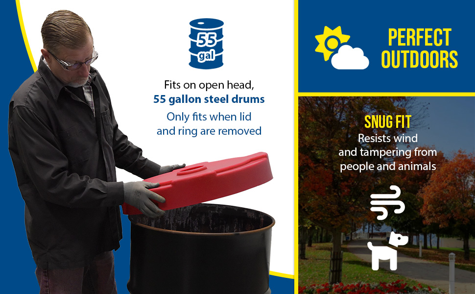 DC-P-55-CAN-RD DC-P-55-CAN-RDLow-Density Polyethylene 55 Gallon Drum Recycling Lid RedWorks With Steel Drum (gal.): 55