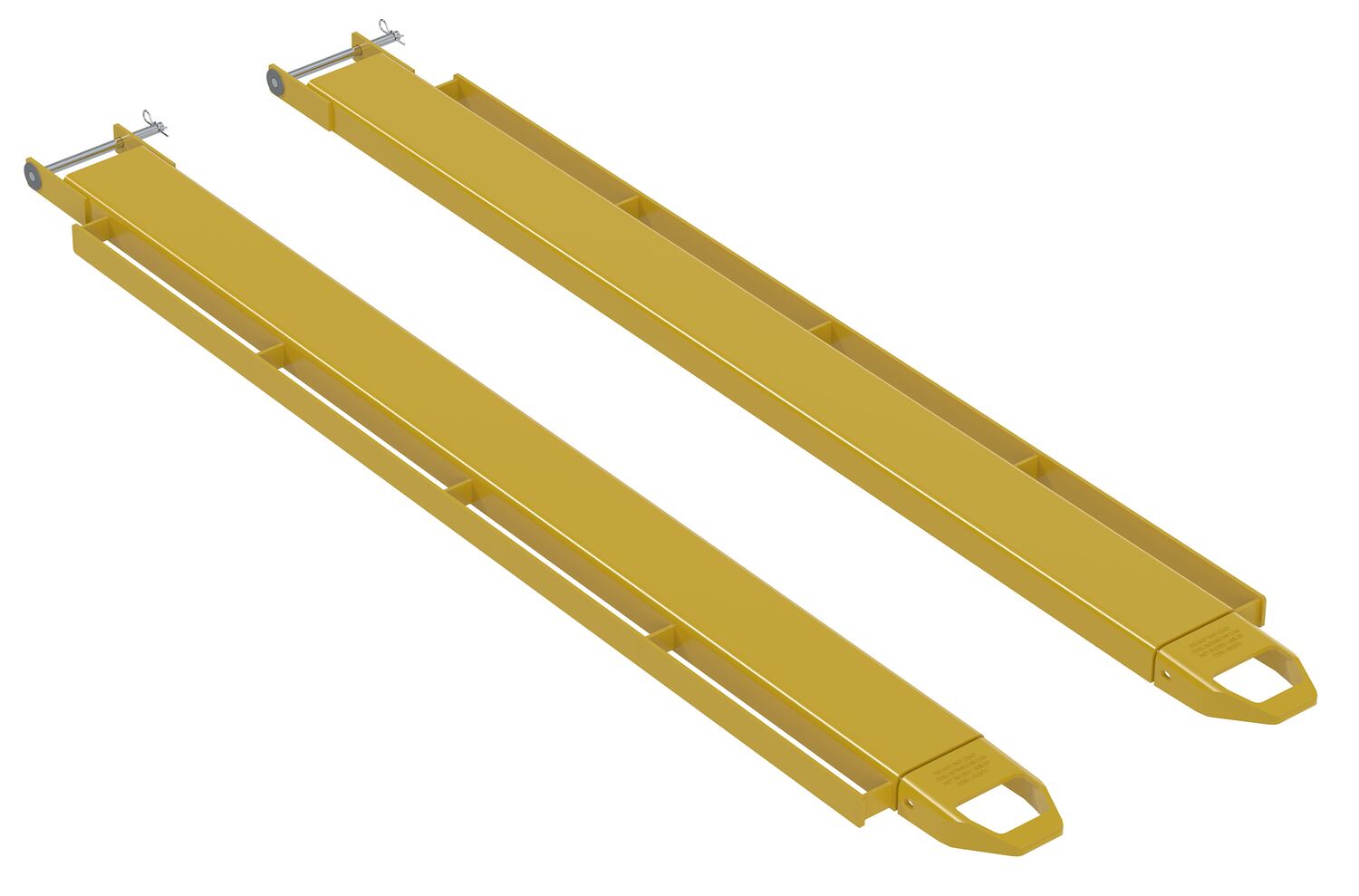 FE-4-96-P-LR FE-4-96-P-LRSteel Pin Style Fork Extensions with Load Rails 4" X 96" 4,000 Lb. Capacity YellowCapacity Per Pair Evenly Distributed (lb.): 4000