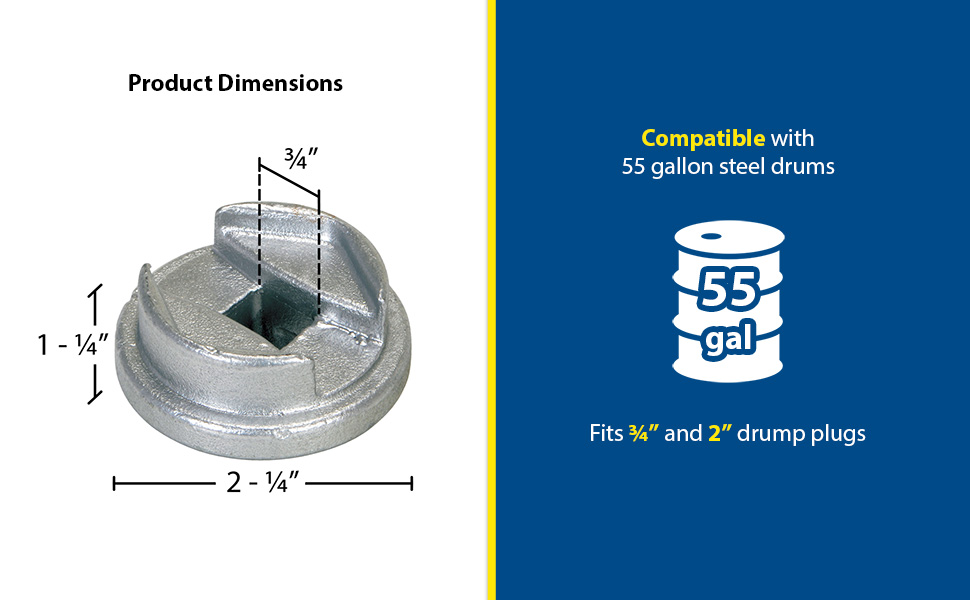 Open drum bungs easily! Designed to be used with standard socket wrenches (wrenches not included). Available in non-sparking bronze alloy or cast steel.