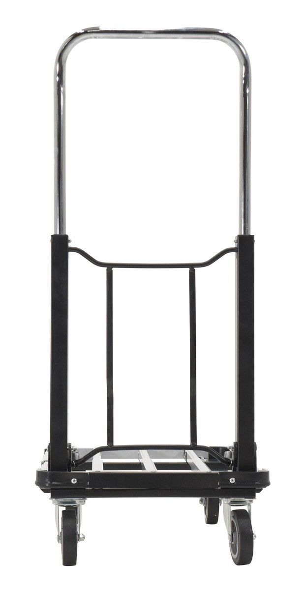 Telescoping aluminum frame has dual length platform; 25" extended and 16-1/2" retracted. Easy steering with 4" x 1" hard rubber casters, two rigid and two swivel. Folded dimensions are 16"W x 20"L allowing the truck to fit into tight spaces for storage. Handle height is 33-1/2" extended and 26-1/2" retracted. Ideal for delivery, repair personnel, frequent travelers and salespeople.