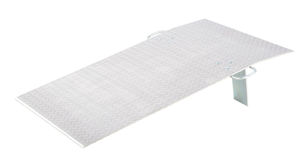 This Aluminum Hand Truck dock plate is designed for use with two (2) wheel hand trucks. It is a convenient, safe, and easy way to access loading docks from trucks. This dock plate is lightweight and easily transported by just one person. The tread plate surface ensures skid-resistant safe traction and the locking legs secure the plate for safe loading and unloading. Complete with bolt-on zinc plated carrying handles and locking legs.