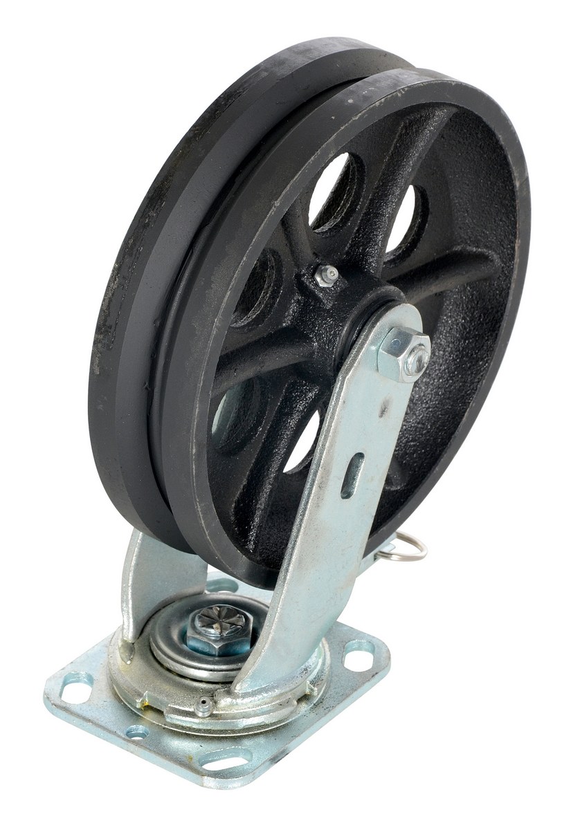 Cast Iron Swivel V-Groove Casters 8 In. x 2 In. For Steel Gantry Cranes 2,000 Lb. to 4,000 Lb. Capacity