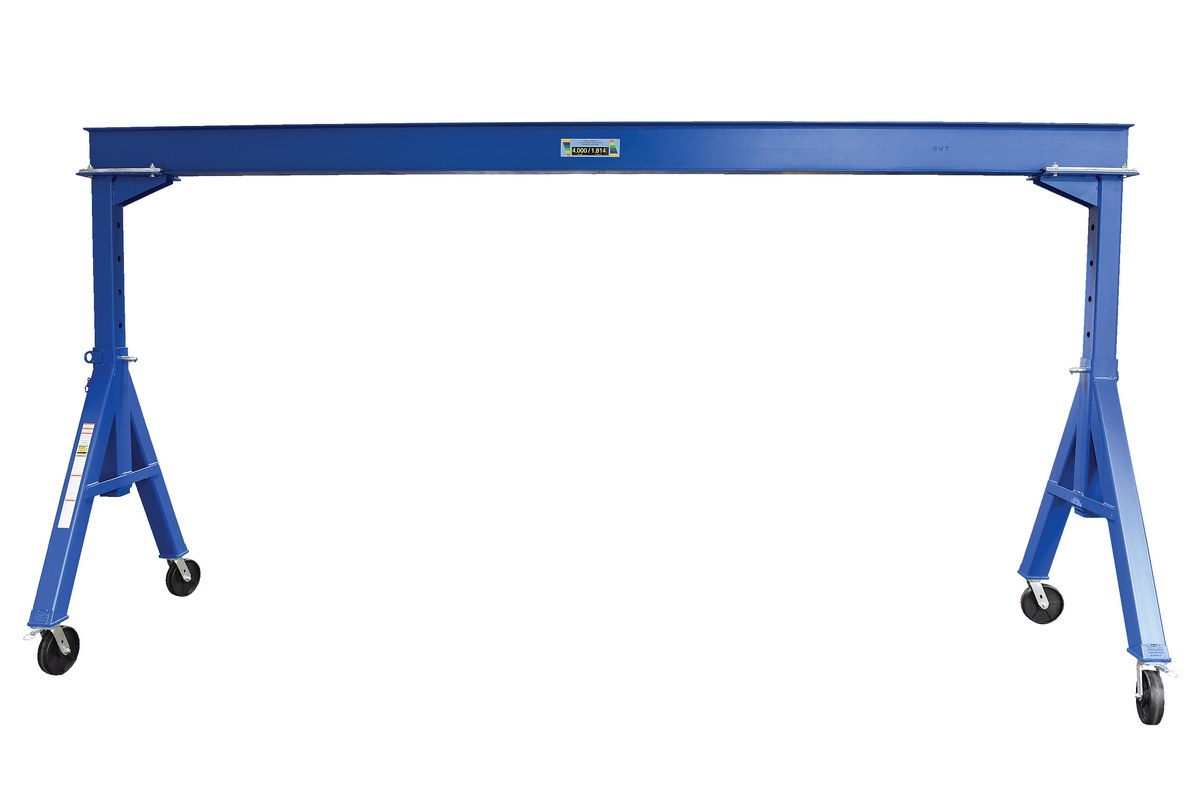 Steel Adjustable Height Gantry Crane with Phenolic Casters 15 Ft.Wide x 7 Ft. Max Usable Height 4,000 Lb. Capacity Blue