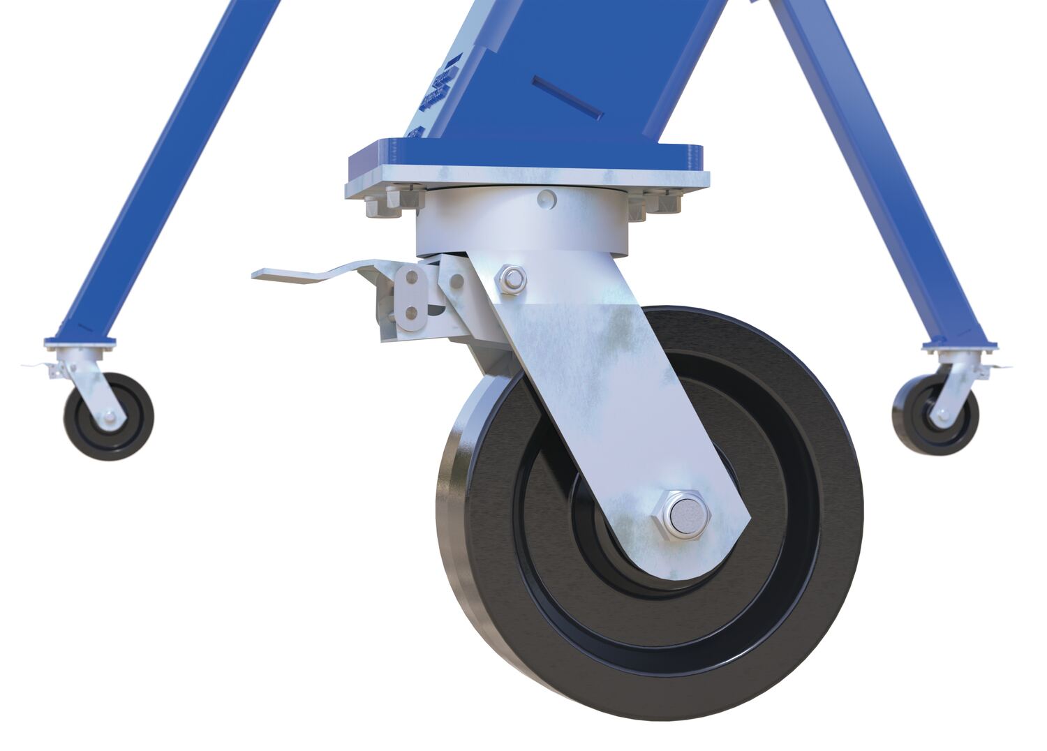 Steel Adjustable Height Gantry Crane with Total Locking Phenolic Casters 20 Ft. Wide x 14 Ft. Max Usable Height 6,000 Lb. Capacity BlueThe adjustable height steel gantry crane is designed for transporting and positioning materials along the beams length. The cranes beam height can be adjusted to better conform to the working conditions making it both ergonomically friendly and cost effective. Facilitate easy mobility from one area to another with total locking casters. Height is adjustable in 6" increments. Do not move units while loaded. Hoist and trolley can be ordered separately. A painted blue finish protects the unit from rust. Designed for semi-permanent or permanent applications.