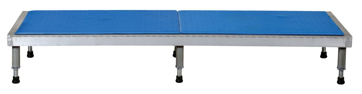 Aluminum Adjustable Work-Mate Stand 72 In. x 24 In. x 9-1/2 In. 500 Lb. Capacity SilverThe adjustable work-mate stand minimizes fatigue by elevating workers to heights that are comfortable and ergonomically correct. Especially useful when multiple shift employees operate the same piece of machinery. The ergonomic matting deck style provides comfort for the operator who stands all day. The height of each leg can be adjusted individually to ensure proper working height.