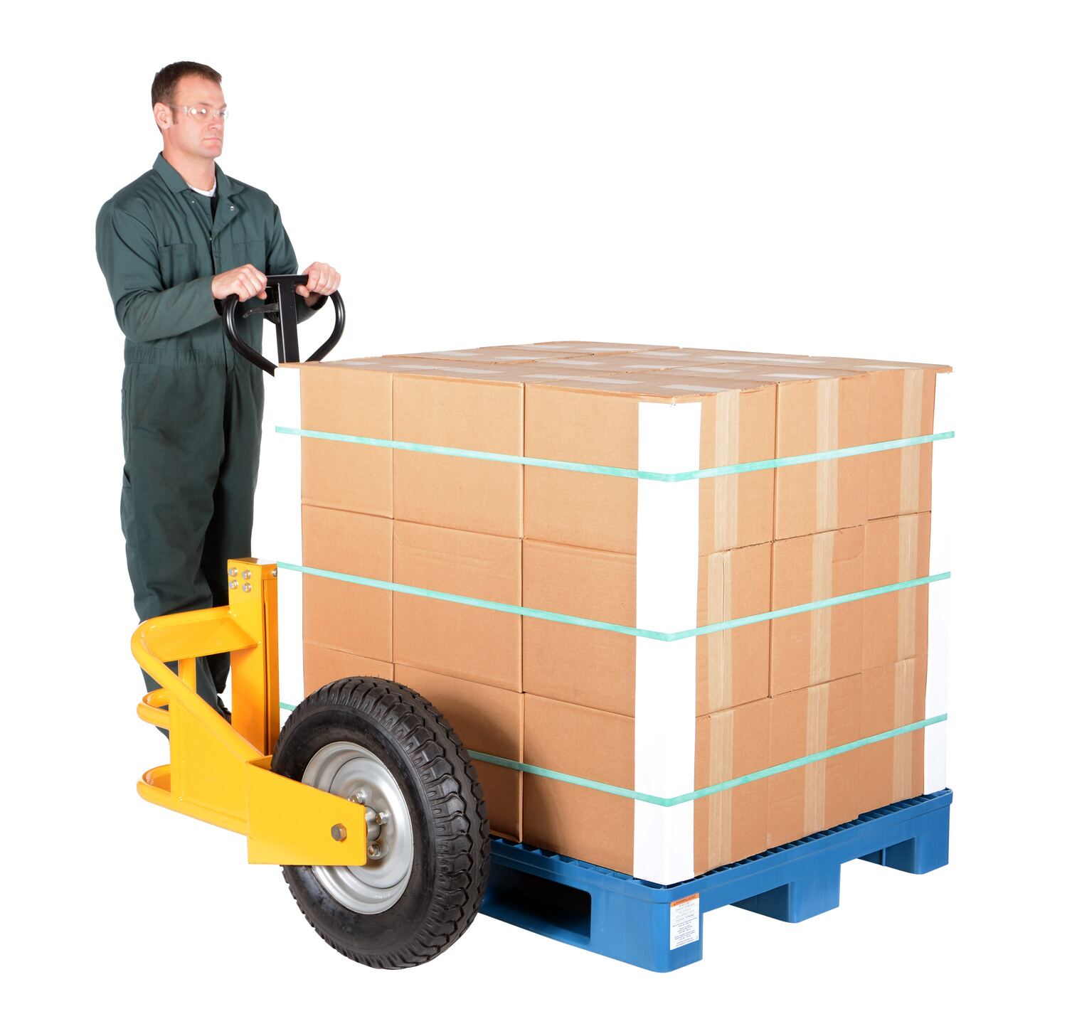 Steel All-Terrain Pallet Truck 32 In. Fork Length 2500 Lb. Capacity Yellow