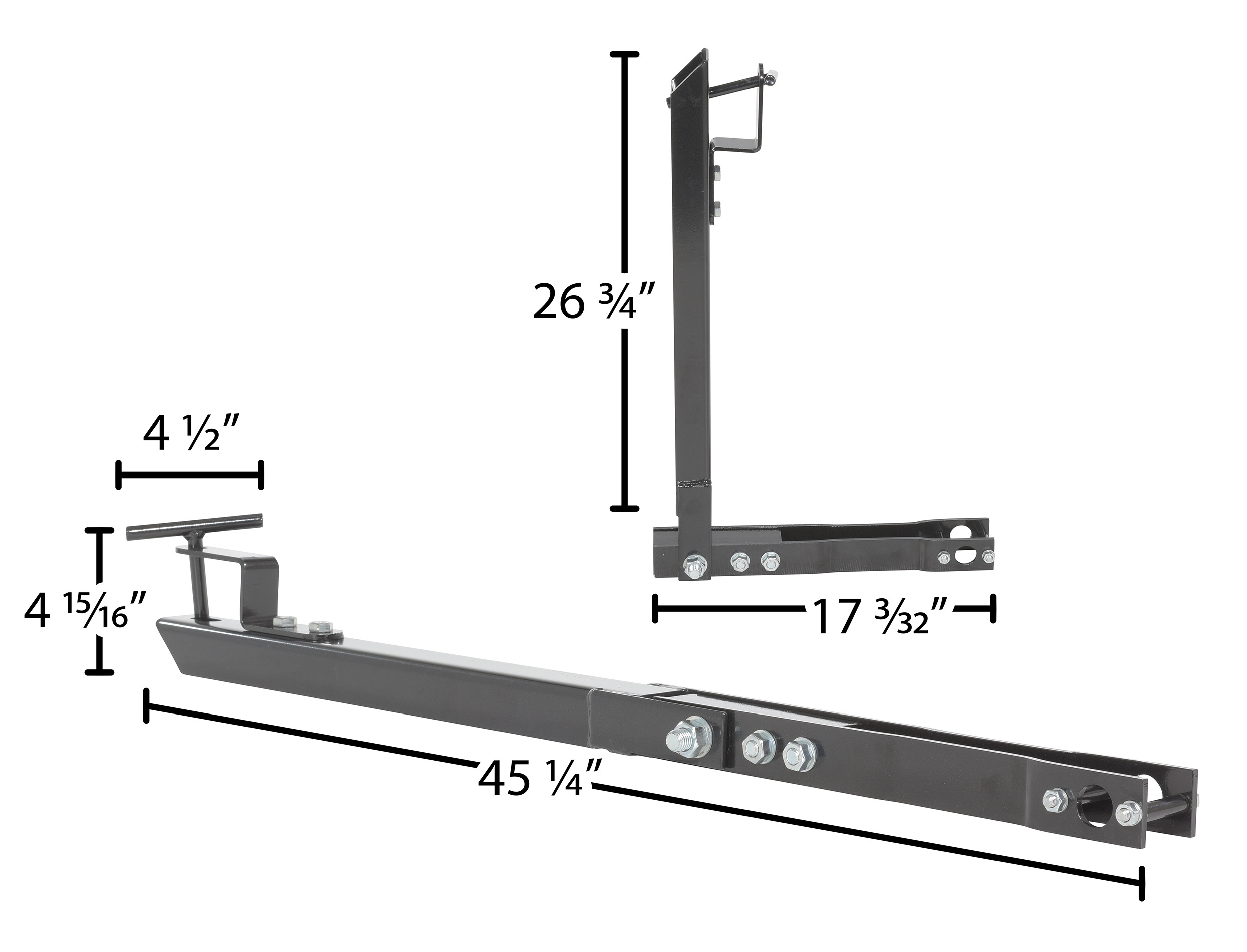 Steel Tow Bar Package For All Terrain Pallet Trucks BlackOptional tow bar Package allows the all terrain pallet truck to be towed by an ATV or small utility tractor. It's designed for pulling in either loaded or unloaded position. For storage purposes, a yellow nylon pulling strap is included.