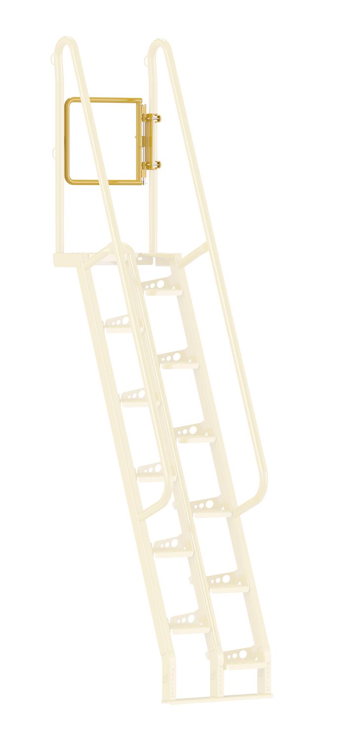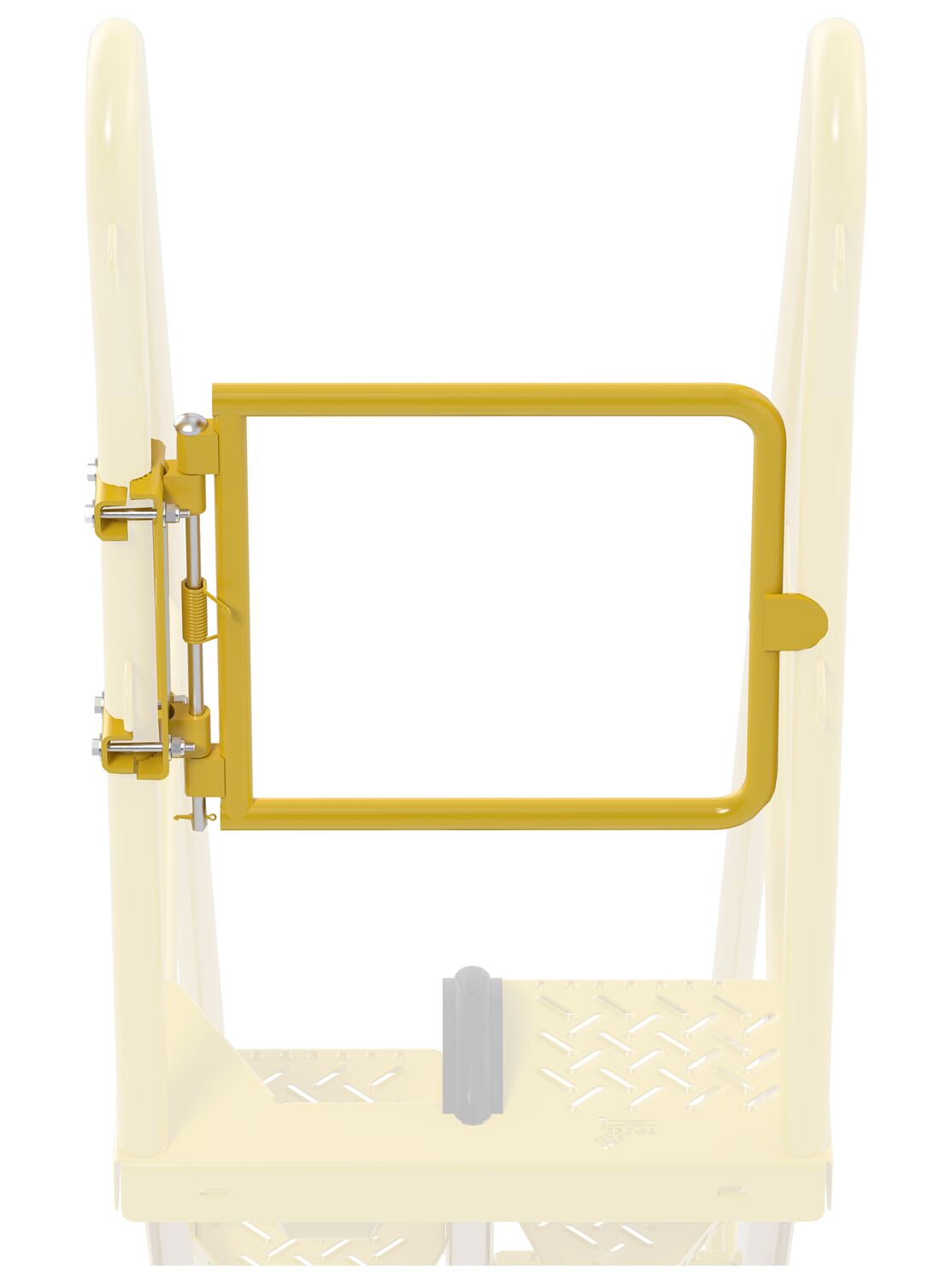 Often times the top step of a ladder is left open, with no railing. This optional gate brings the two ladder side rails together, providing much needed personnel protection. The gate includes a top and bottom rail ensuring high and low user safety.
