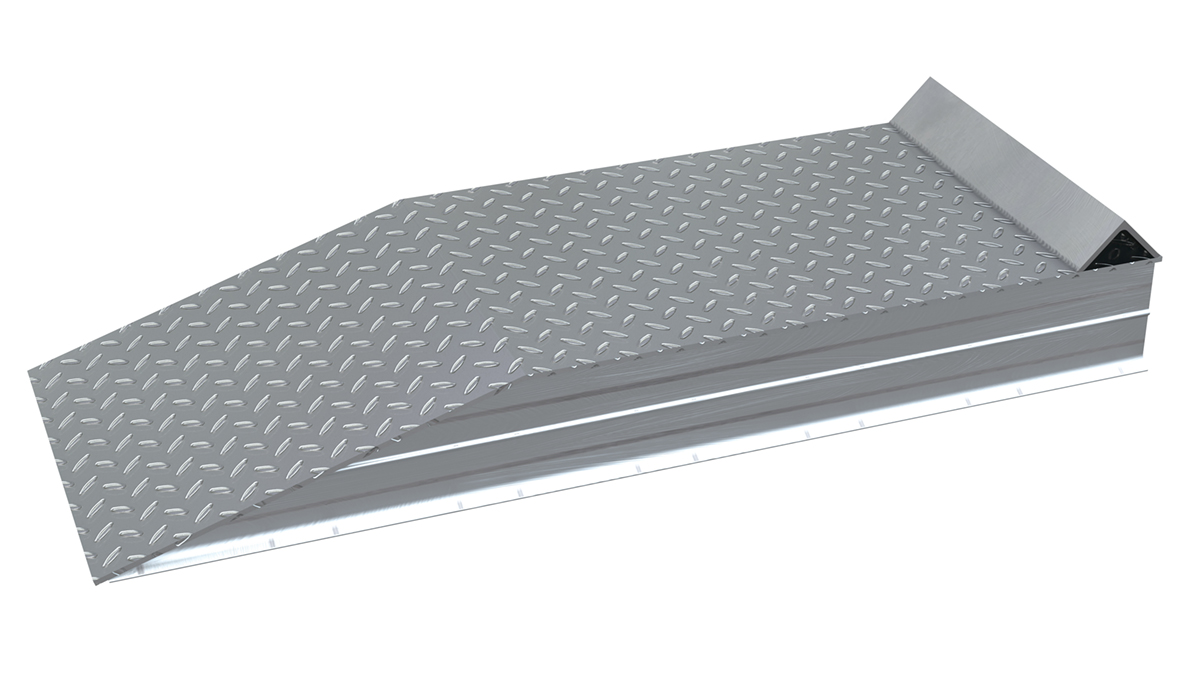 Aluminum Tread Plate Wheel Riser with Roll Off Guard 120 In. x 24 In. x 14-1/16 In. 30000 Lb. Capacity SilverA standard wheel riser is a great asset to have available when working in the shipping and receiving industries. But, this wheel riser is more than standard. With an aluminum construction, this unit includes a roll off edge guard that acts as a stop point. This allows the user to safely mount the wheel riser without the fear of going too far. The raised tread surface gives added traction throughout the ascending and descending action.