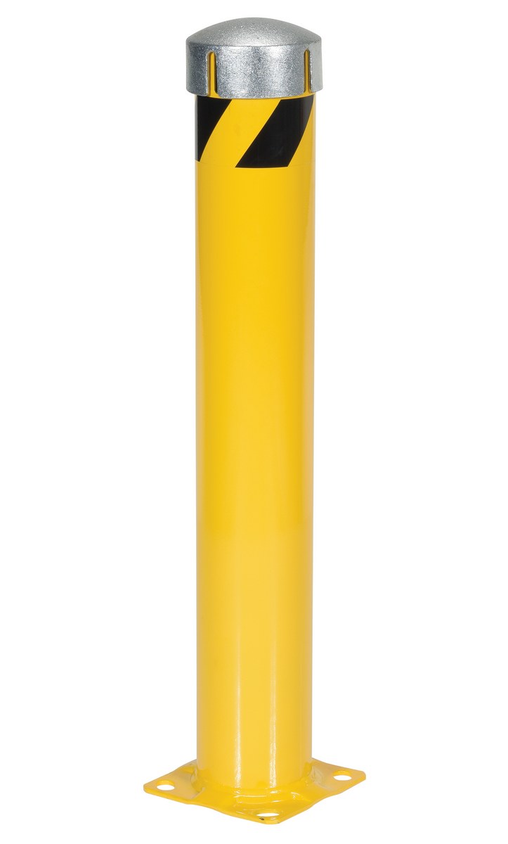 Steel Pipe Bollard with Removable Bolt-On Steel Cap and Slots 36 In. x 5-1/2 In. Yellow