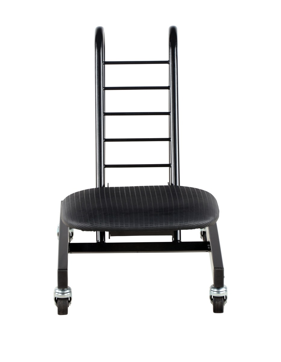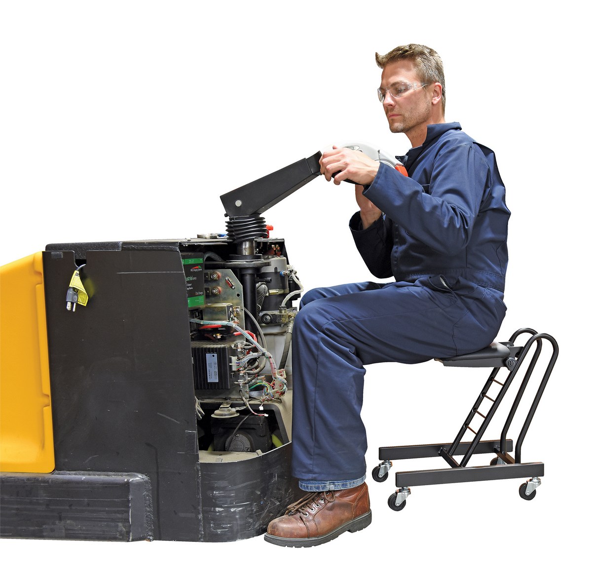 The Ergonomic worker seat allows individuals to go from a low crouch position to a standing position. The seat height can be adjusted by moving the seat and hooking in to the horizontal bars located on the chair frame. Portable on swivel casters. The unit has four rubber "shocks" under the seat base that allow the seat to tilt forward, left, and right so it can accommodate your body movements. The front tilted position of the seat helps the user maintain the natural posture position of the spine.