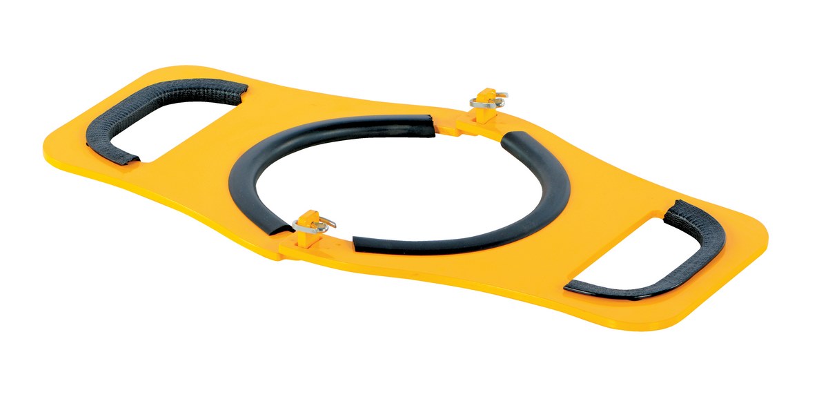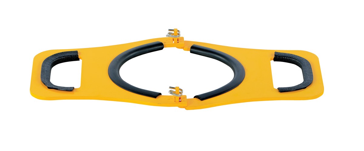 This manual Cylinder lifter is easy to use and allows for safely lifting cylinders. The pivoting design grabs and squeezes the cylinder when lifted. The lifter has a rubber-coated center and handle holes. Steel construction with a powder-coat yellow finish.