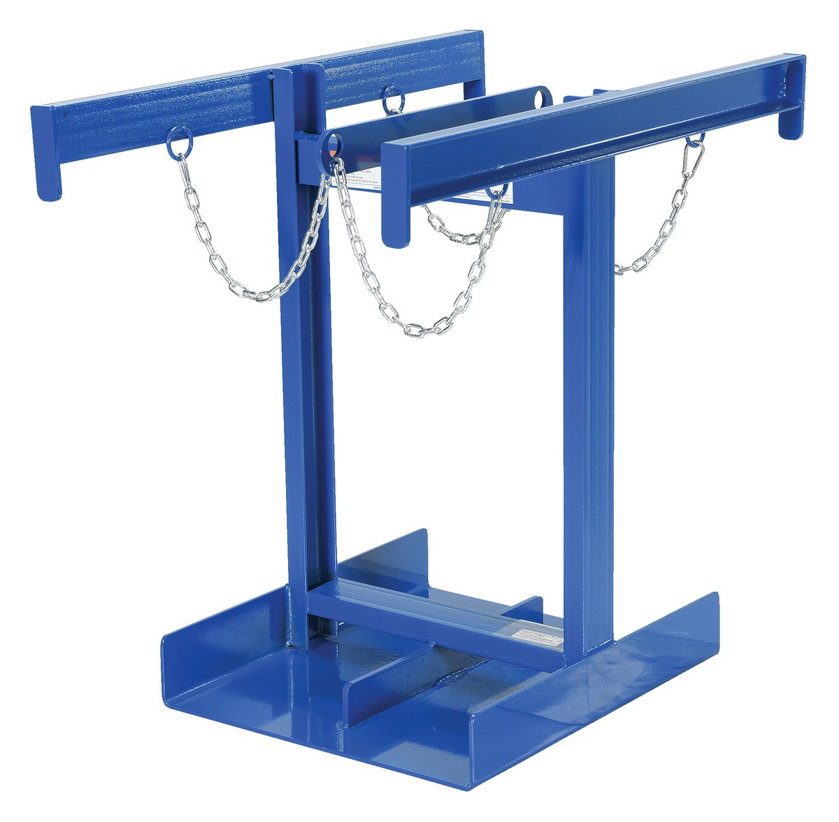 Steel Cylinder Caddy 4 Maximum Cylinders 800 Lb. Capacity BlueA Cylinder caddy transports cylinders safely with this fork mounted style. This unit comes complete with safety chains to secure the cylinders in place.