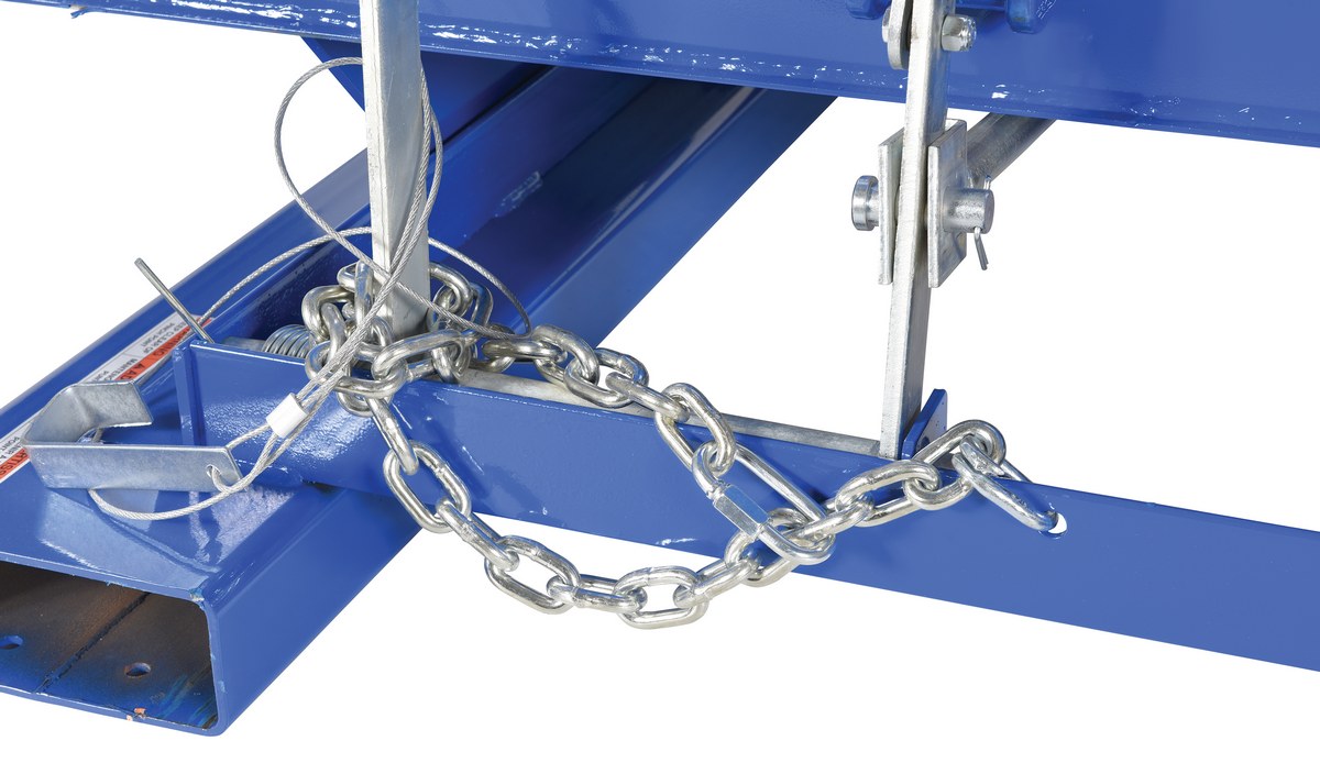 This Medium Duty self-dumping steel Hopper with bumper release automatically dumps when bumper release contacts the front of the dumpster. Hopper returns to an upright and locked position automatically after it dumps. Also includes a cable that may be operated from the seat of the fork truck to manually dump the hopper. The included safety restraint should be properly secured to a fork truck before dumping. (Length dimension is measured at top of chute.) Self-dumping hoppers facilitate compliance with OSHA general industry rule 29 CFR 1910.178(m)(5)(iii) by allowing lift truck operators to remain at the controls of their truck throughout the dumping process.