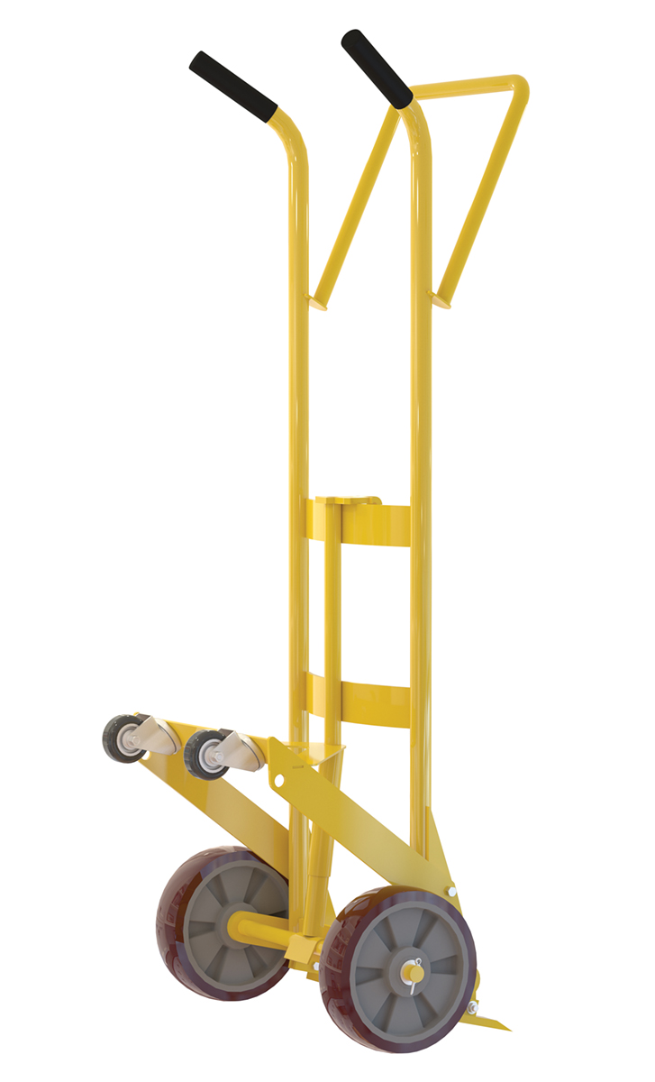 Designed for moving 55 gallon steel drums. Features a spring mechanism, which allows for easier tilting of fully-loaded drums. Four-wheel design for easier drum transportation when tilted. Top loop handle allows for easier control when moving. Drum is secured to truck with an adjustable height drum hook bar. Removable drum hook bar includes built-in bung nut wrenches. Capacity is 1,000 pounds. Steel construction with powder coat finish.