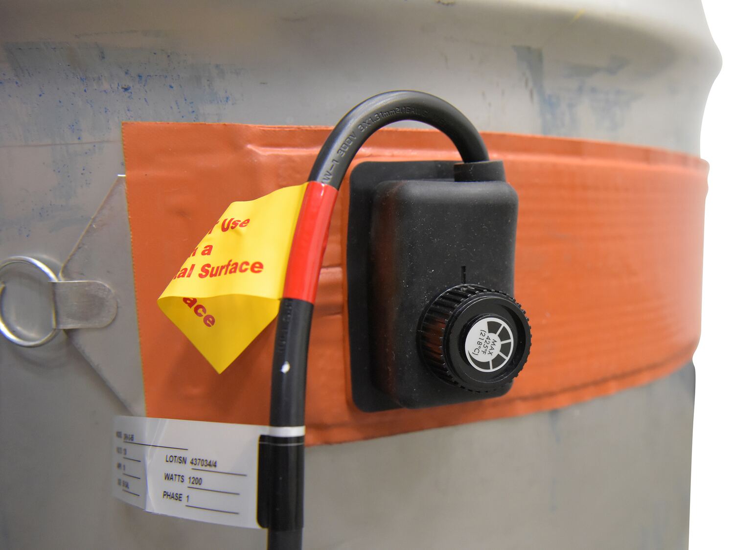Quickly and efficiently heat-up your steel drums or pails with a drum heater. Solves a wide range of freeze protection, viscosity control, and process temperature applications. Easily adjust thermostat. This extra-wide silicone rubber band heater is moisture and chemical resistant. Multi-stranded grounded heating element provides uniform heat and a long service life. Spring closure can be expanded. Unit comes with a power cord. Recommended for use with GFCI outlets only. Heater is CE approved (not UL listed).