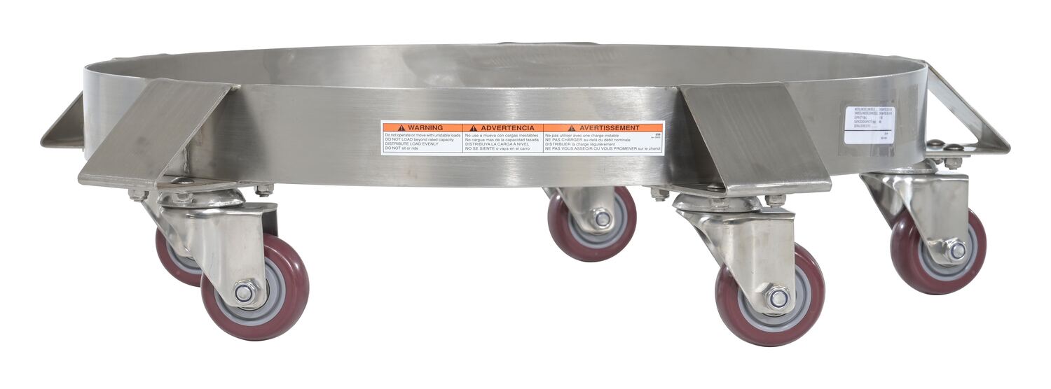 A mobile drum dolly is the perfect accessory for transporting loaded and unloaded drums. For best fit, the dolly should be used in conjunction with a 55 gallon drum. Nylon casters allow the unit to move seamlessly across a variety of surfaces. A stainless steel construction diminishes the effects of adverse conditions and general wear and tear throughout a lifetime of use. Assembly required.